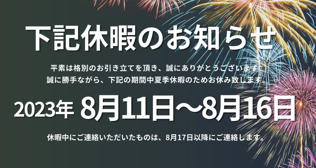 夏季休暇のお知らせ
