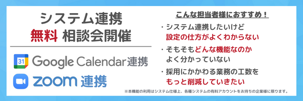 ※本機能はシステムの仕様上、Google Workspaceや有料Zoomアカウントをしておられる企業様のみご設定いただけます。