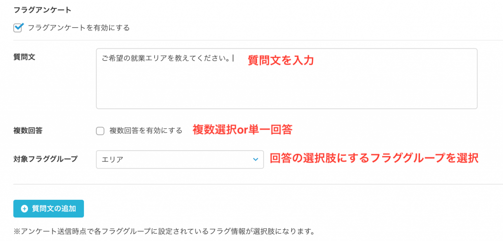 質問の回答選択肢は事前に登録したフラググループから設定できます。