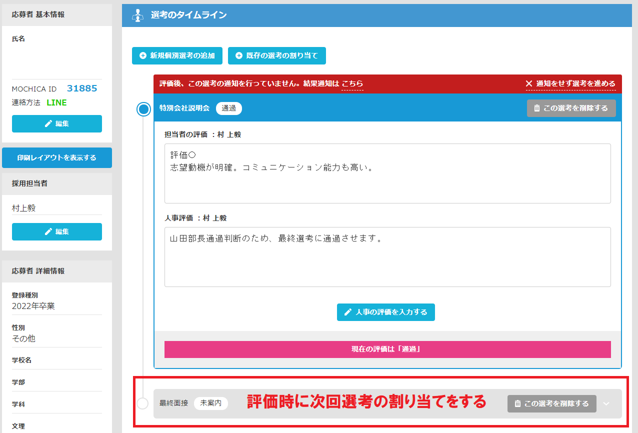 ①手順:選考結果評価時に次回の選考も割り当てしておく