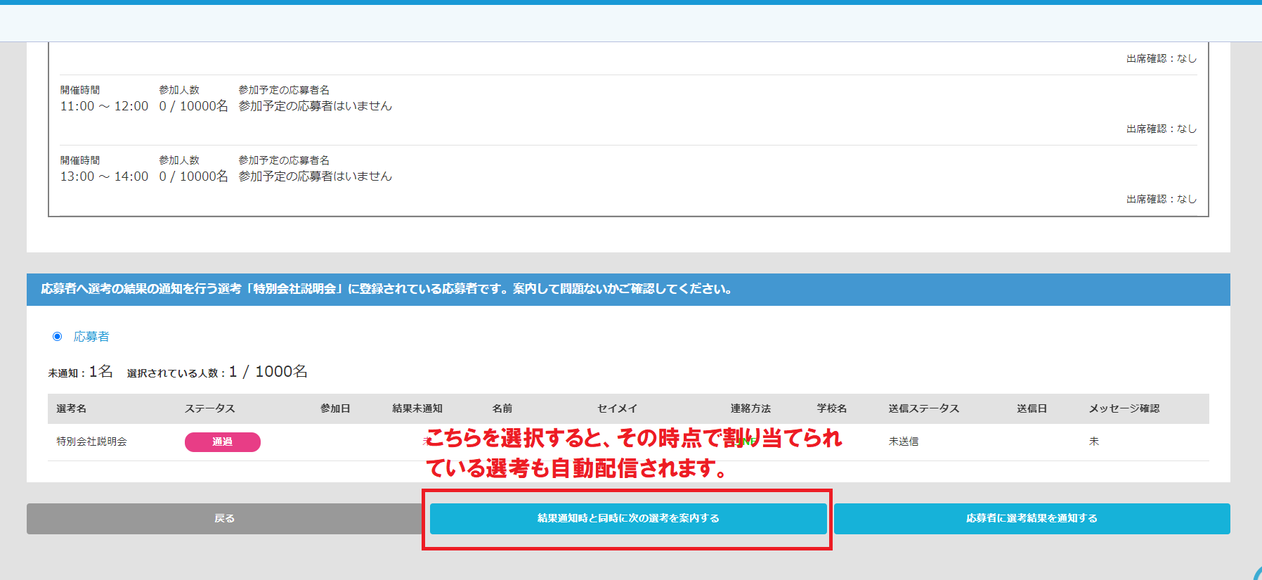 次の選考を割り当てて、選考案内を送っておりましたが、