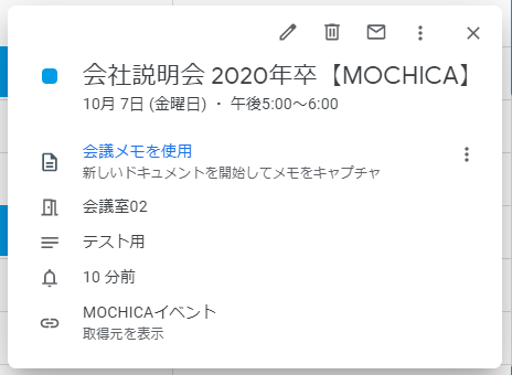 この度、MOCHICA側で作成された選考を連携先のGoogleカレンダーに予定として出力できるようになりました。