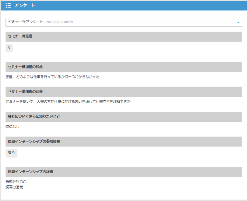 応募者が回答したアンケートは応募者の個人ページ上で確認していただけます。