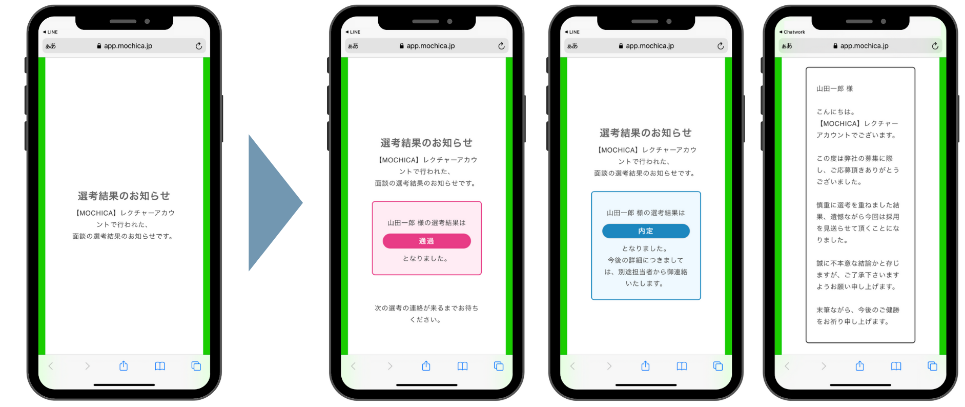 応募者は、トーク画面上でテキストベースで結果を確認する仕様になります。