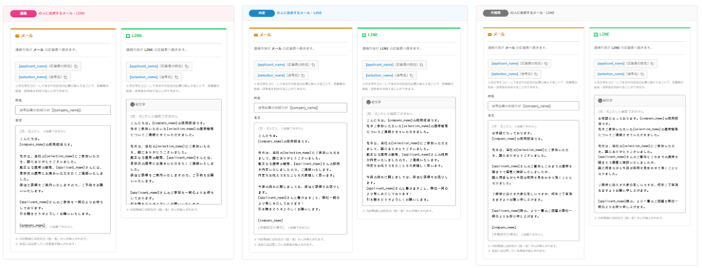 ・結果通知文面についてはデフォルトで文面が固定されており、編集不可