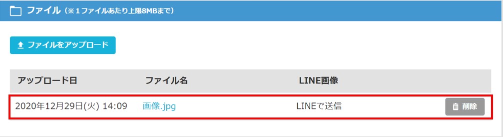・管理画面から送信したデータはファイルアップロード欄に格納されます。