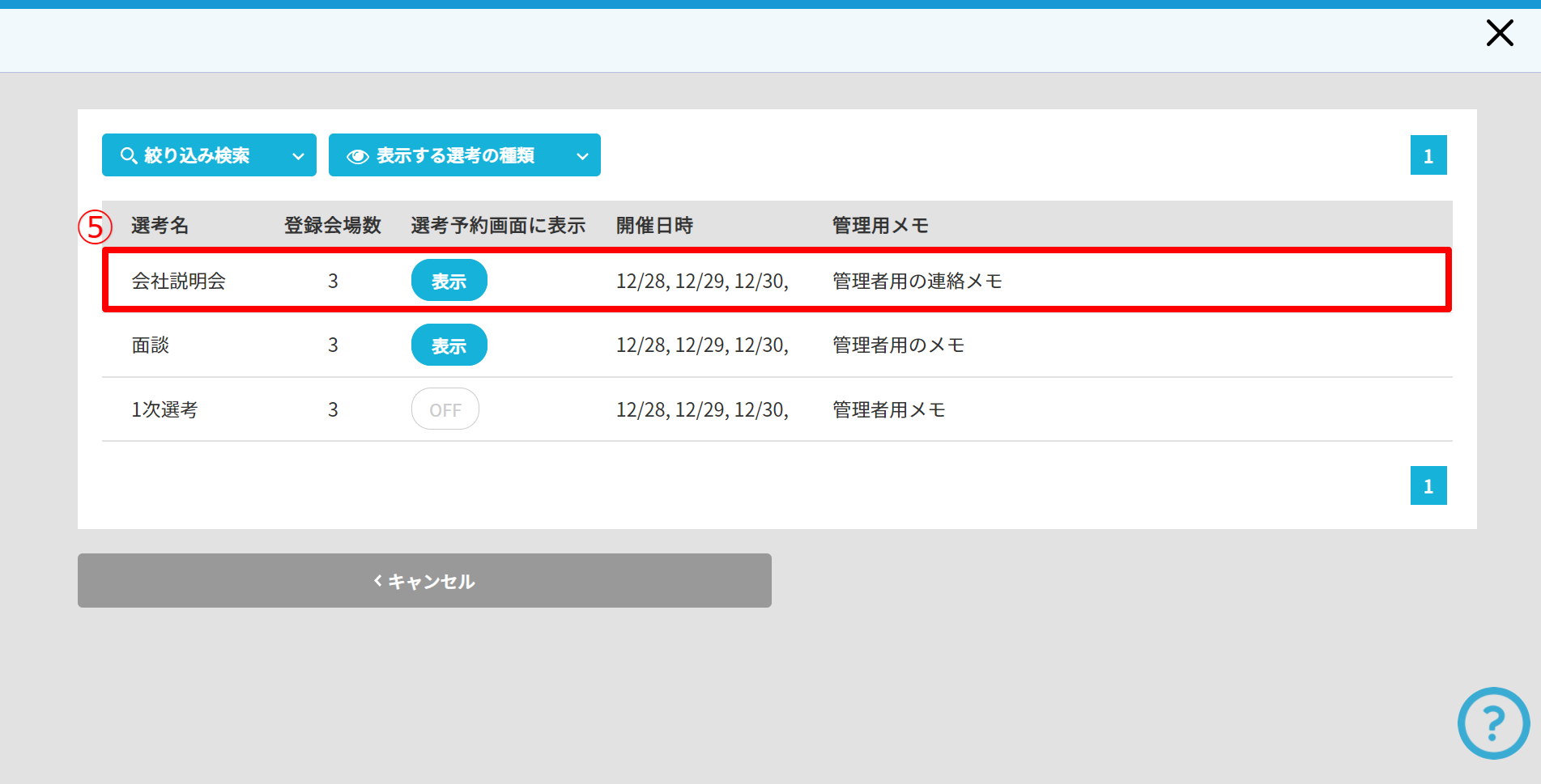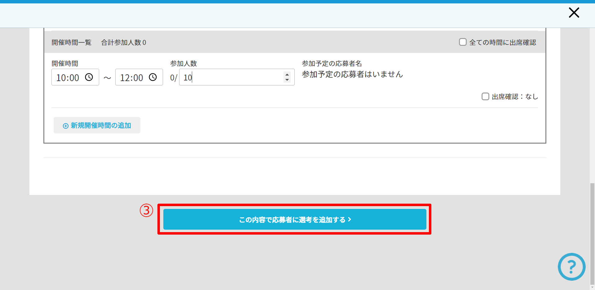 ※作成済みの選考に日程を追加する操作はこの画面からはできません。選考のページからご対応くださいませ。