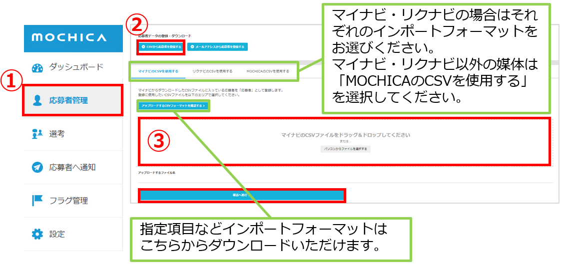 注2:同一学生の情報が既にMOCHICA上にある場合。取り込んだフラグ情報は既存の学生情報に「追加」されます。上書きではございませんのでご注意ください。
