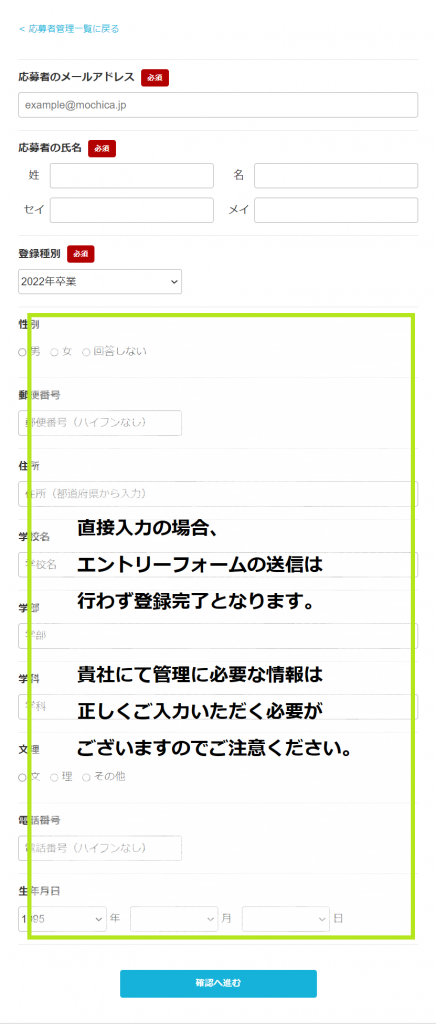 注1:登録された個人情報は、それぞれの卒年のボックスに登録されます。