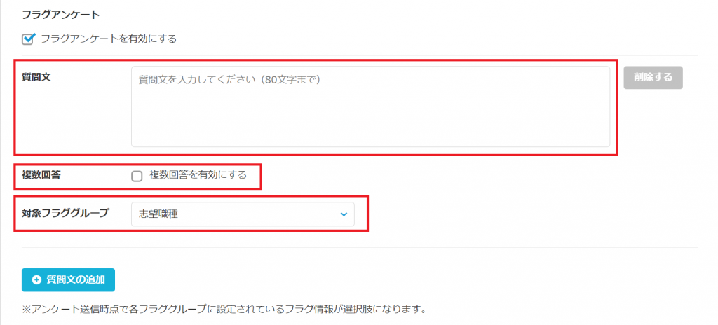 質問文の追加:複数質問を設定する場合こちらよりご設定下さい