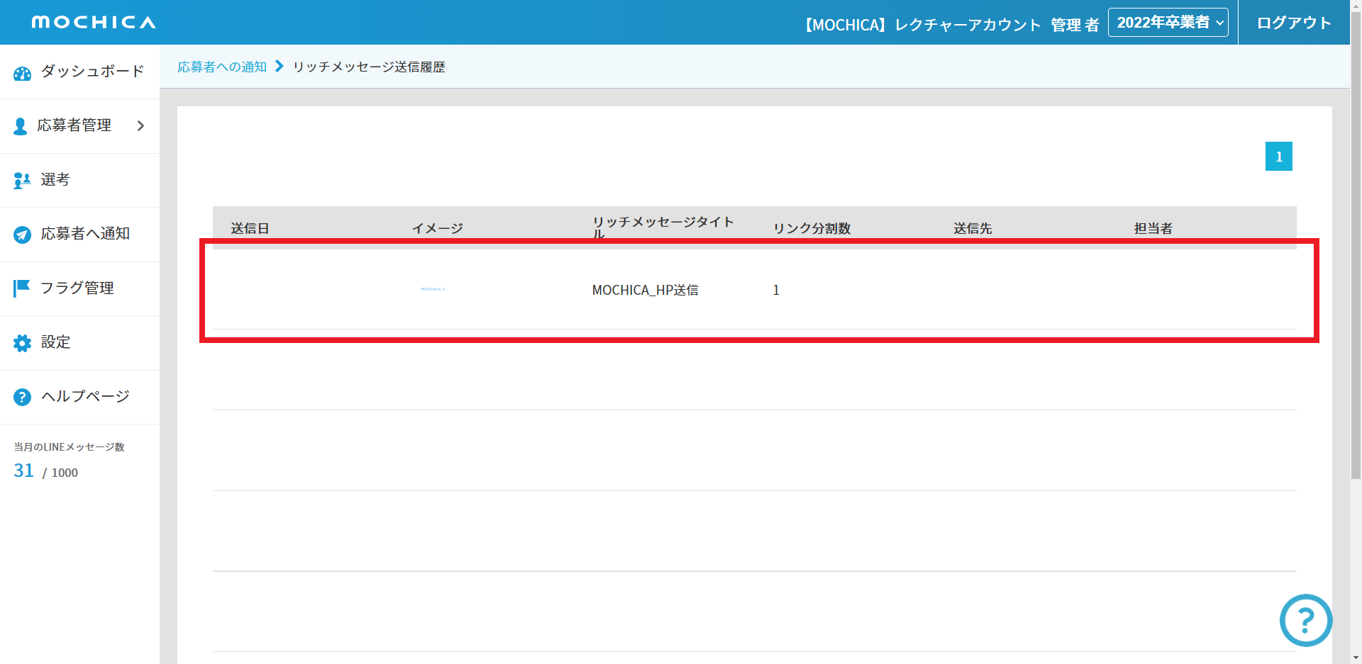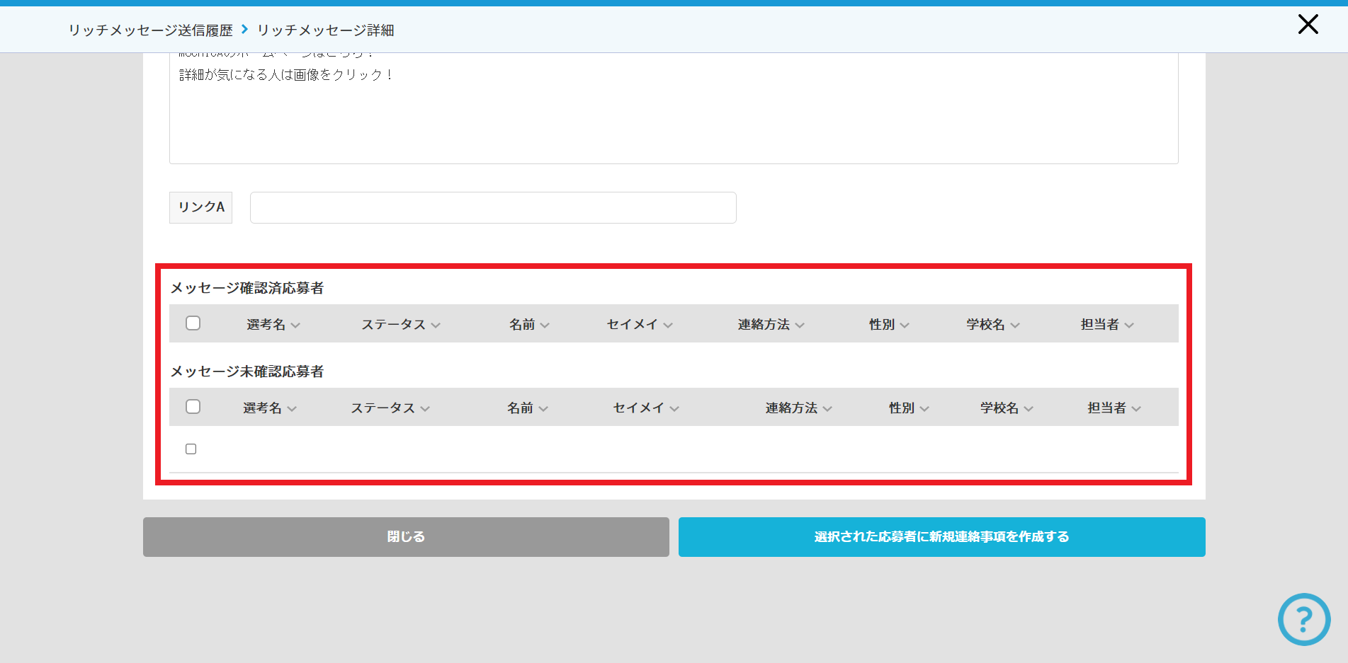 応募者がそのURLをタップすると、管理画面側でメッセージを確認した旨の記録がされます。