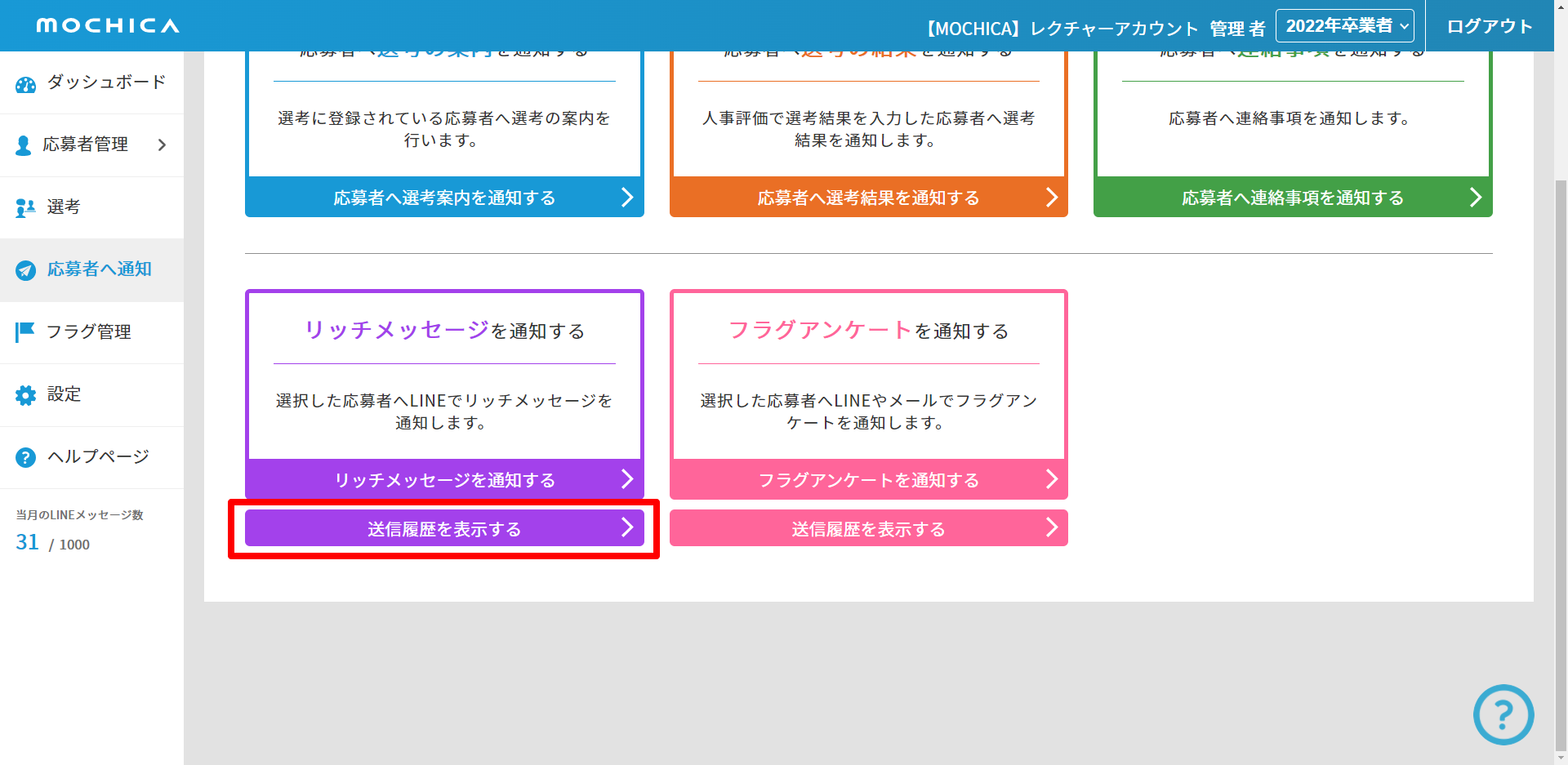 ④ 「送信履歴を表示する」からリッチメッセージの送信履歴を確認する