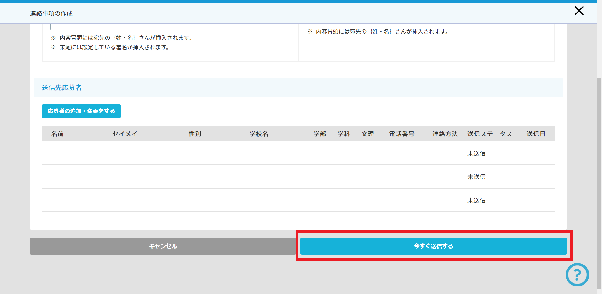 ② 内容を各種設定し「今すぐ送信する」をクリック。