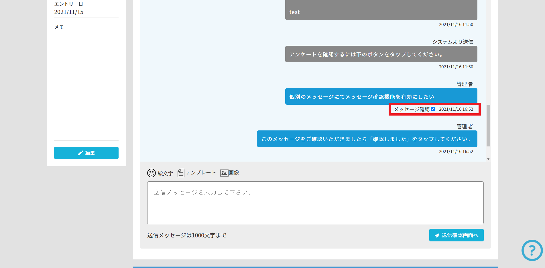 メッセージ確認機能