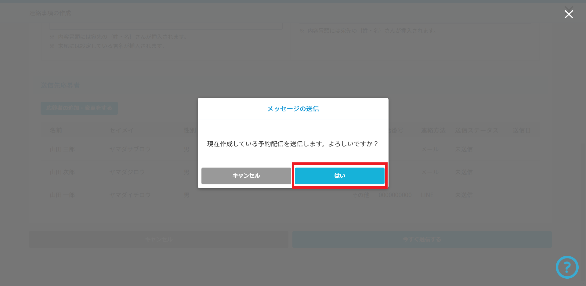 ※一斉送信メッセージの操作方法はコチラから。