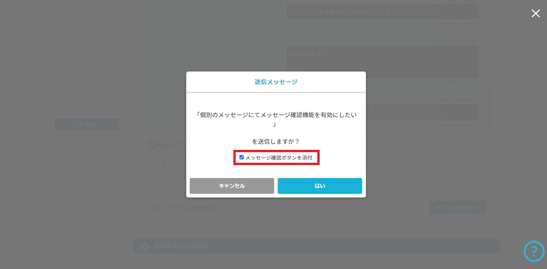 メッセージ確認機能を有効にすることで、
