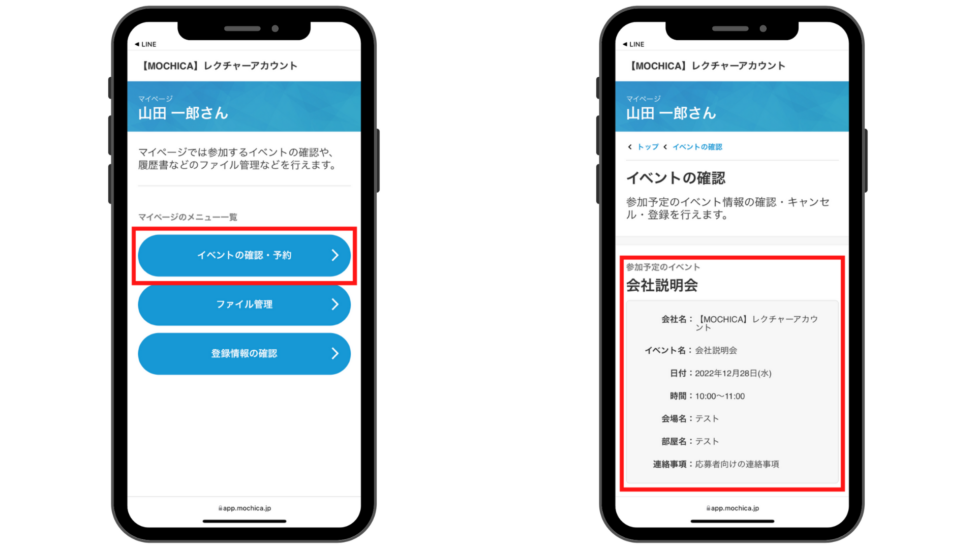 応募者はマイページから、現在予約している選考内容をいつでも確認することが可能です。