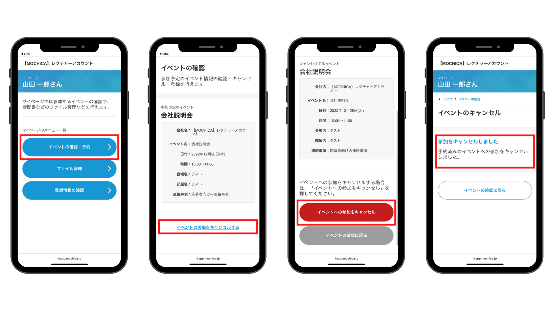 応募者は予約した選考のキャンセルをマイページから行うことが可能です。