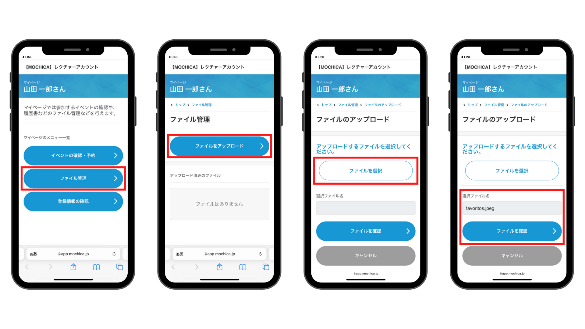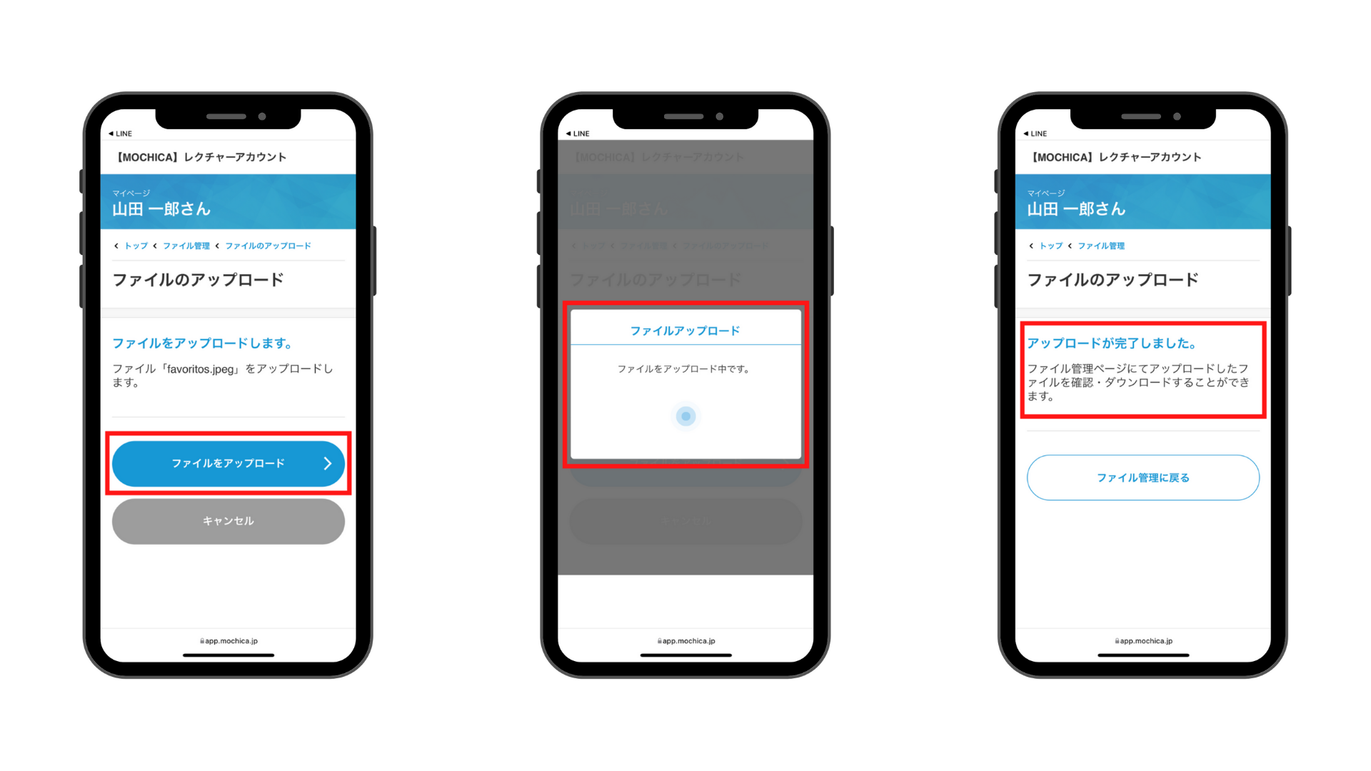 ⑤ 「ファイルをアップロード」をタップしアップロード開始