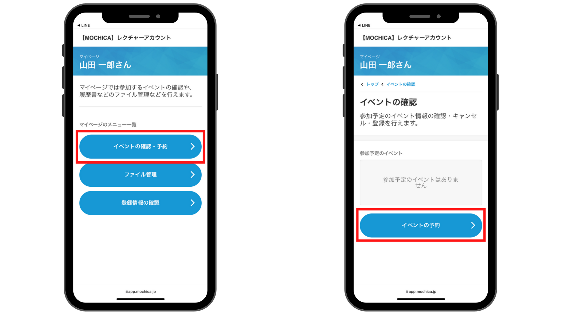 マイページ内の、「イベントの確認・予約」のボタンからいつでも予約可能なオープンな状態になります。