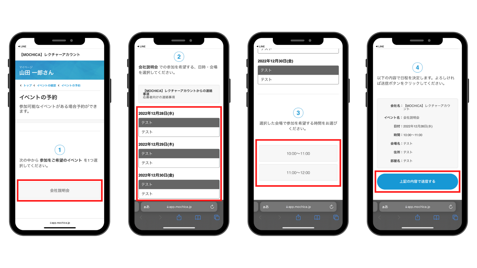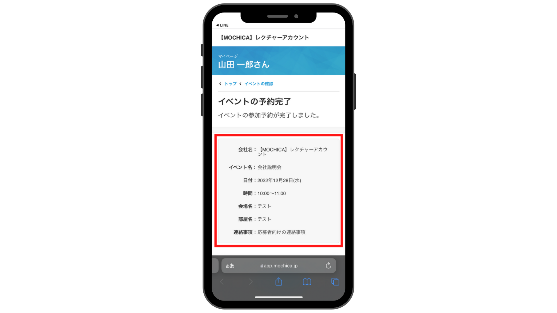 ※予約完了時、メール、LINEの両方で予約完了した旨のメッセージが送信されます。