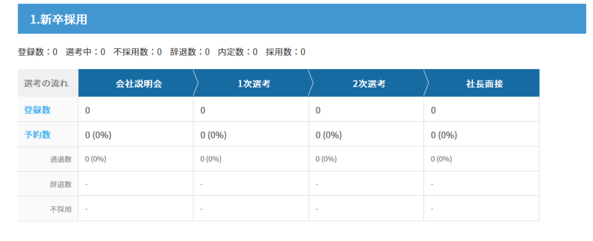 予約数以下の項目に関して、選考日程が設定されている応募者のみカウントされます。