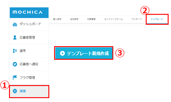 ③「テンプレート新規作成」をクリック