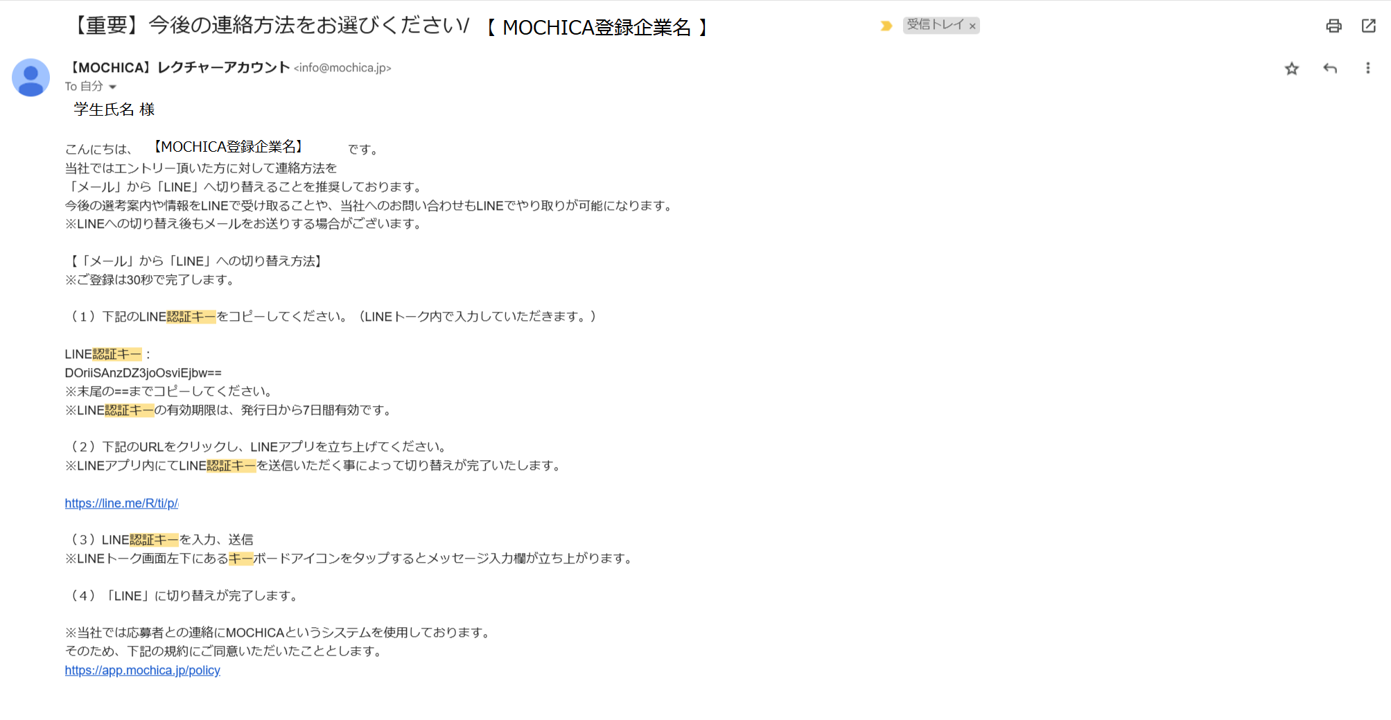 連絡手段がメールの方に向けて、LINEに移行するためのメールを送信します。