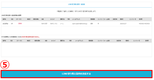 ④「選択した応募者にLINE切り替え案内を送信」をクリック