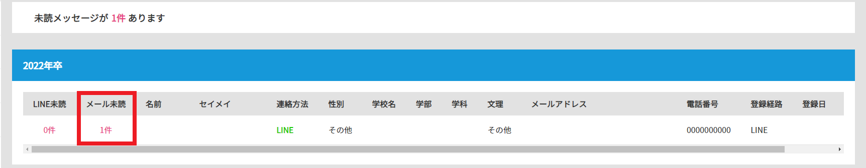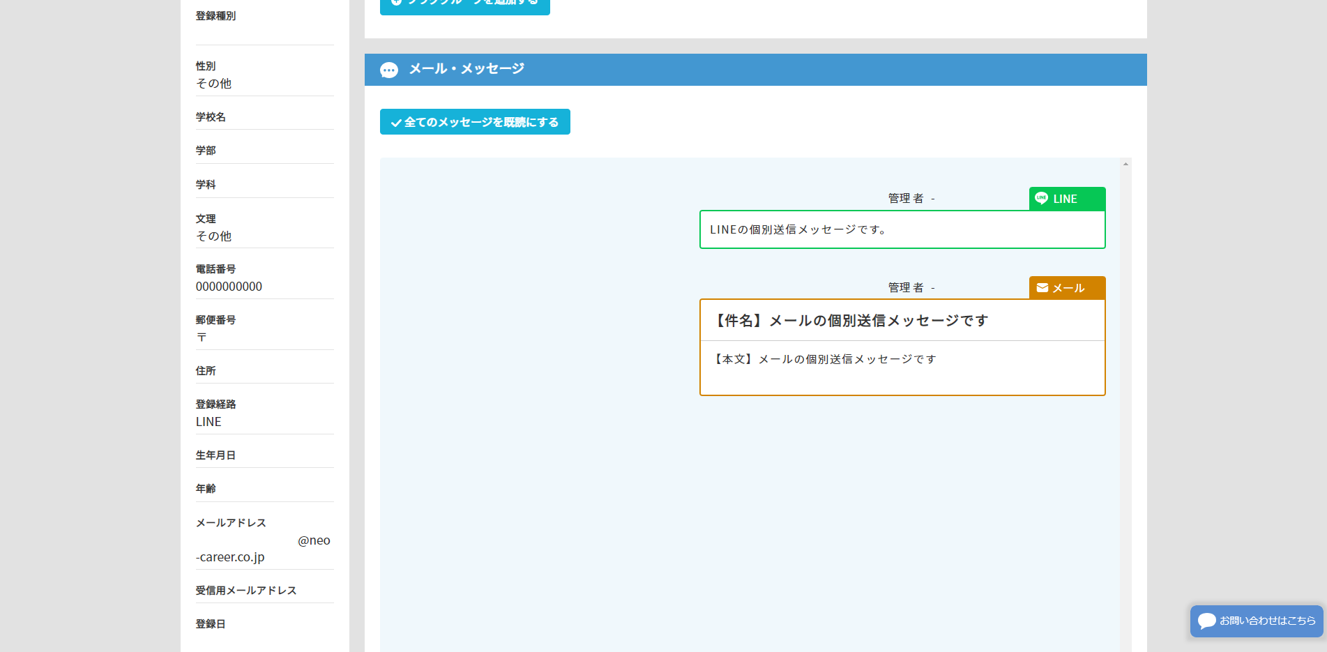 連絡方法がLINEになった学生に対し、メールで個別連絡をすることが可能です。