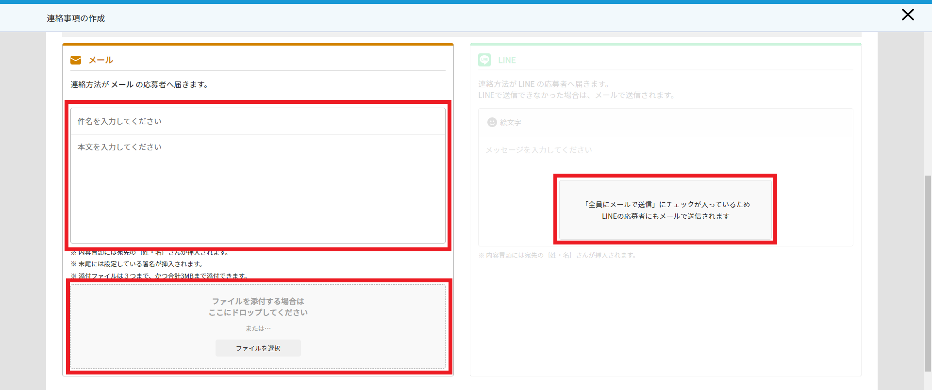 連絡方法がLINEの応募者も含めてメールで一斉送信が可能になりました。