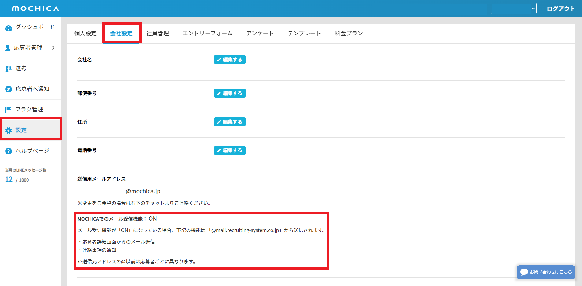 弊社指定のドメイン(@mail.recruiting-system.co.jp)を利用したメールアドレスに自動的に切り替わります。