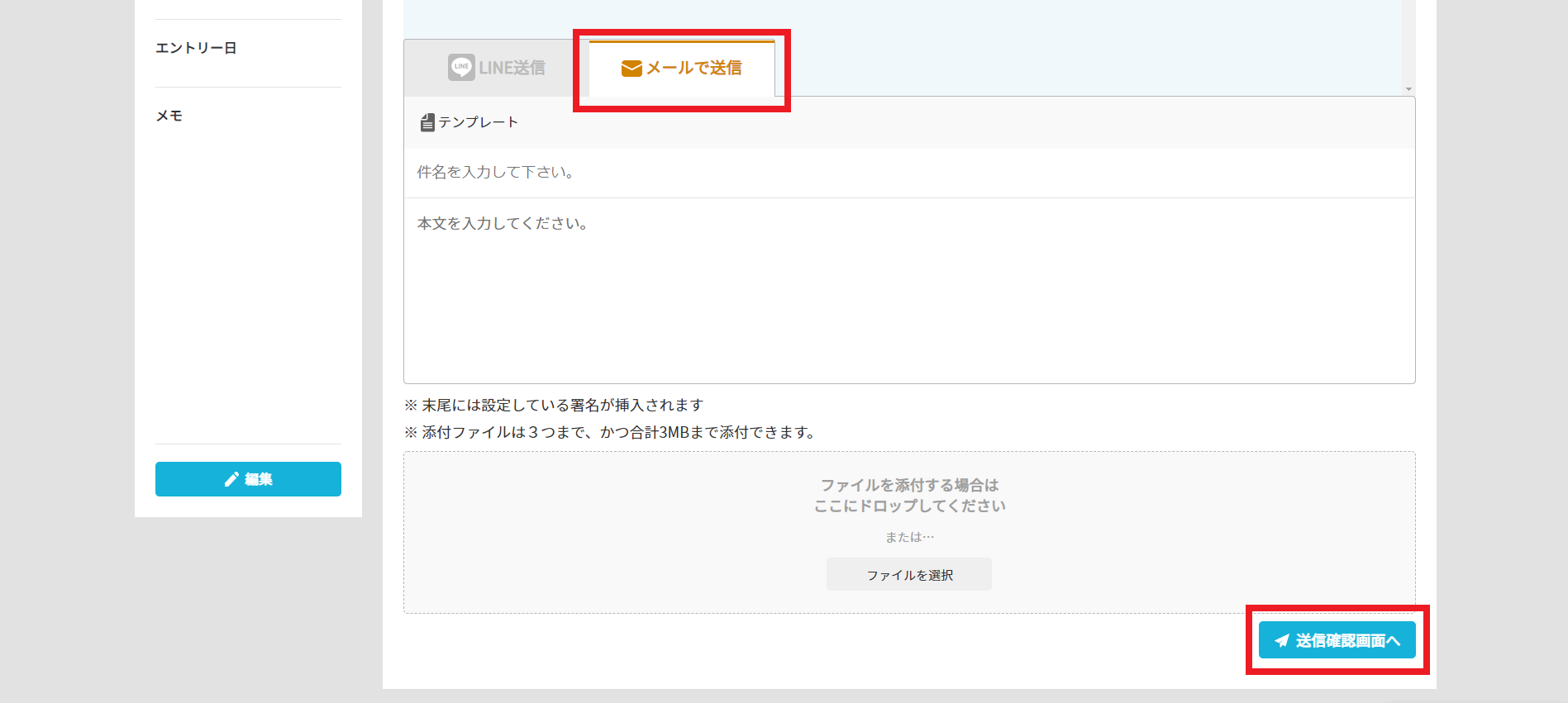 ※同時添付3ファイルまで、かつ合計3MBまで添付できます。