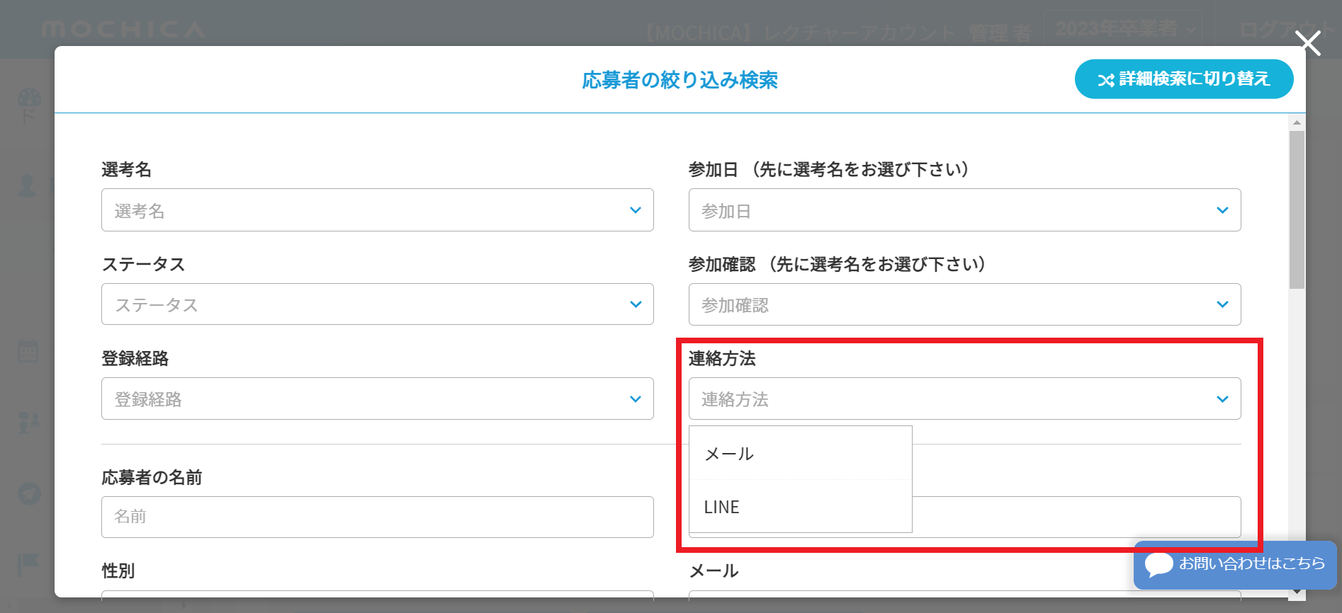 ・アップデート①:応募者の検索項目に「連絡方法」を追加